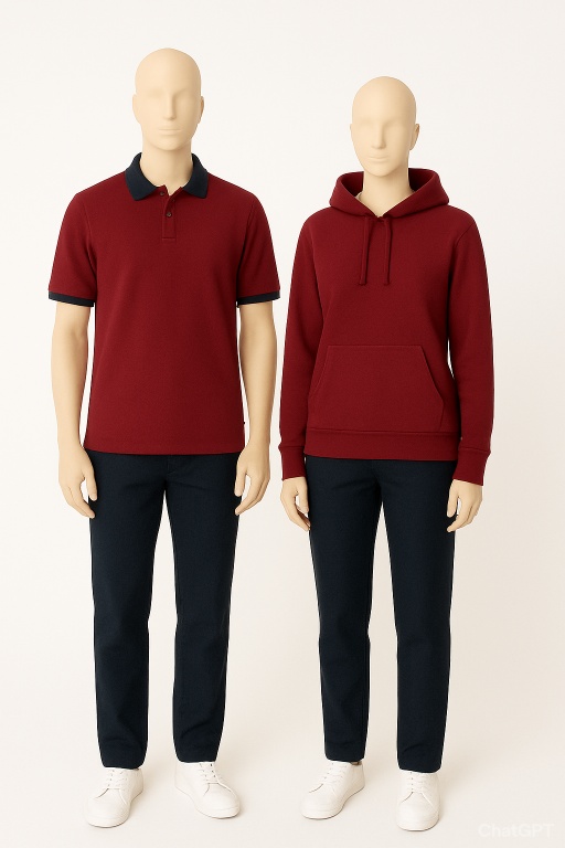 Okulumuzun kıyafetleri bordo polo yaka T-Shirt altına lacivert kumaş pantolan veya bordo Kapşonlu-Sweatshirt altına yeine lacivert kumaş pantolondur. Okul kıyafetinin görselleri aşağıdadır.